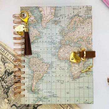 ComprarDiário Elegante – Com Cadeado Coração Dourado – Mapa Mundi – 100 Folhas