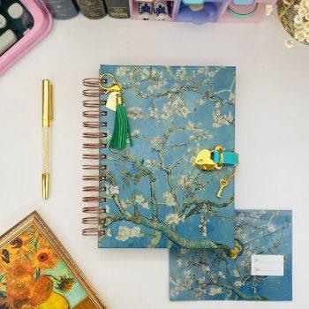 ComprarDiário Elegante – Com Cadeado Coração Dourado – Amendoeira Em Flor – 100 Folhas