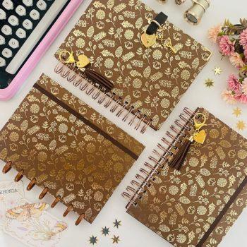 ComprarDiário Elegante – Com Cadeado Coração Dourado – Florologia Castanha – 100 Folhas