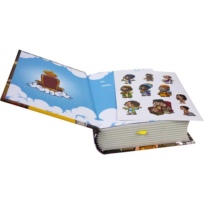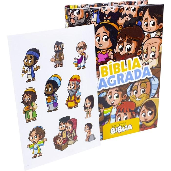 Depois do sucesso do Álbum de Figurinhas dos Personagens Bíblicos, a SBB apresenta a Bíblia Sagrada Turma da Bíblia. Na Nova Tradução na Linguagem de Hoje, a publicação vem com capa dura e traz o auxílio Fonte de Bênçãos, um índice de passagens bíblicas que aborda quatro aspectos da vida cristã: relacionamento com Deus, relacionamento com as pessoas, relacionamento com a Palavra de Deus e bênçãos da vida cristã. Os versículos recebem destaque ao longo do texto bíblico. A edição vem, ainda, com 80 páginas coloridas com os personagens da Turma da Bíblia e texto em destaque com referência bíblica, além de uma cartela de figurinhas autoadesivas, para a criança levar a Palavra de Deus sempre com ela.