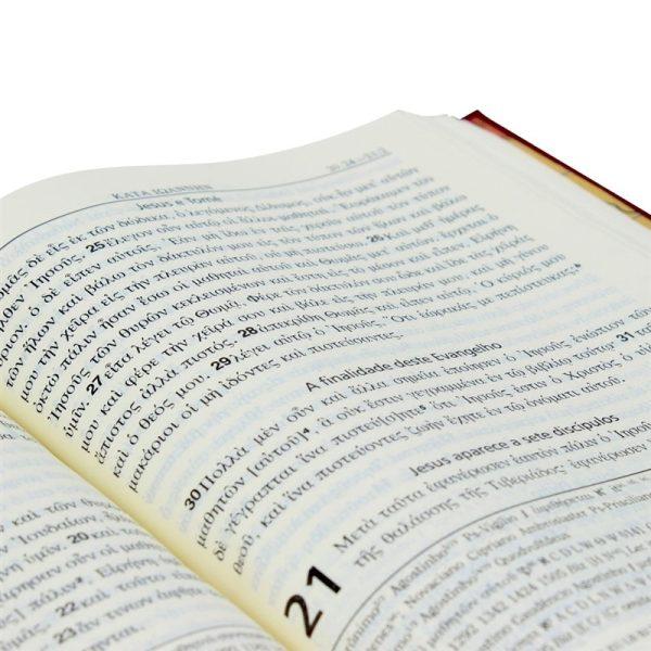 Quinta edição revisada do Novo Testamento Grego. O texto grego, estabelecido por uma comissão internacional e interconfessional, é idêntico à 28ª edição do Novum Testamentum Graece de Nestle-Aland.