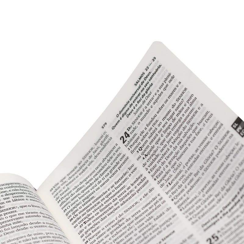 Esta edição da Bíblia Sagrada é ideal para quem busca conforto na leitura da Palavra de Deus e, ao mesmo tempo, praticidade no uso e transporte diários. Disponível em diversas opções de capa, com ou sem zíper e índice impresso. A linha Ouro apresenta material de acabamento de excelente qualidade e papel importado.