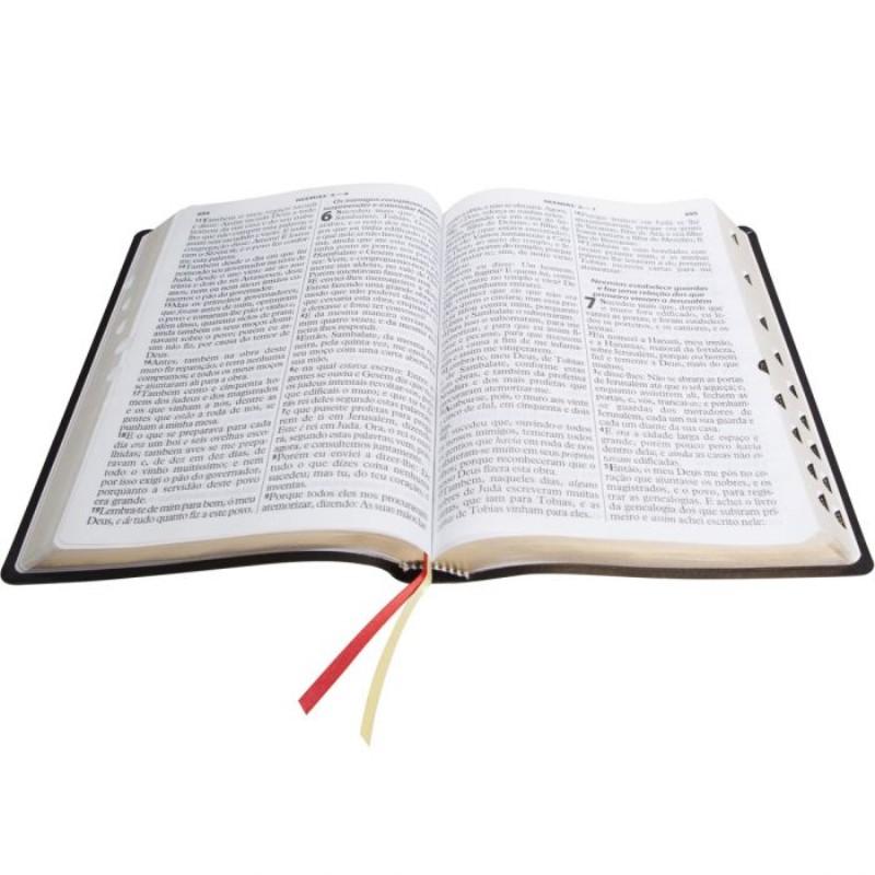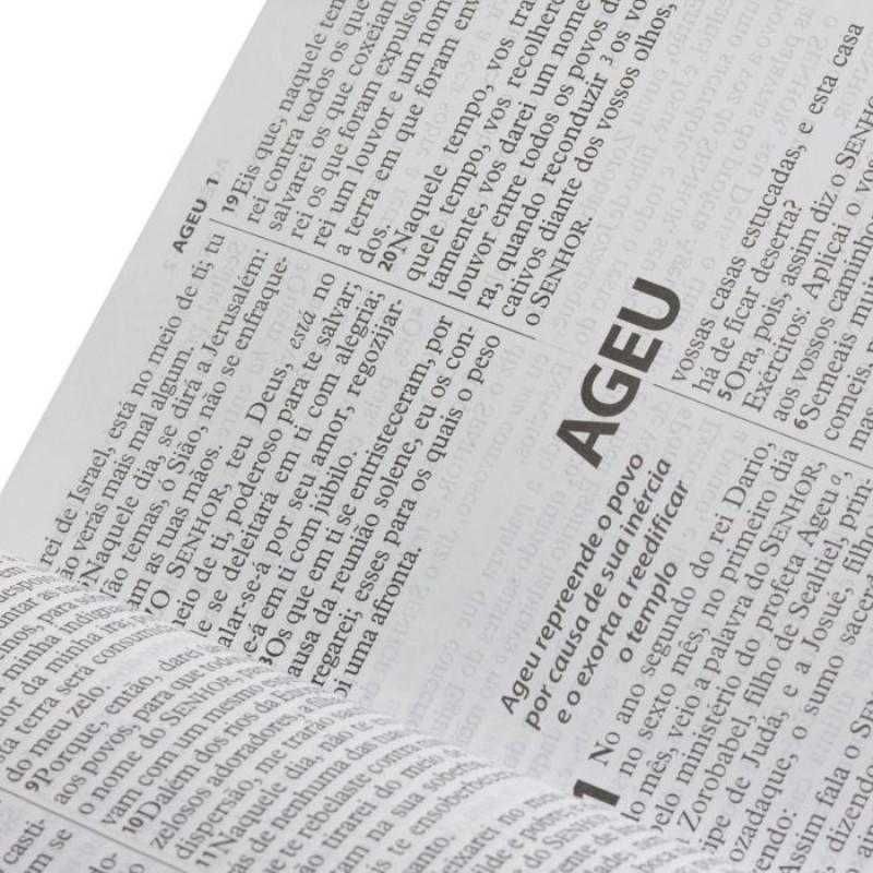 Com tamanho de letra extragigante, este modelo da Bíblia Sagrada oferece mais conforto na leitura, especialmente ao grupo da terceira idade ou àquelas pessoas com problemas leves de visão.