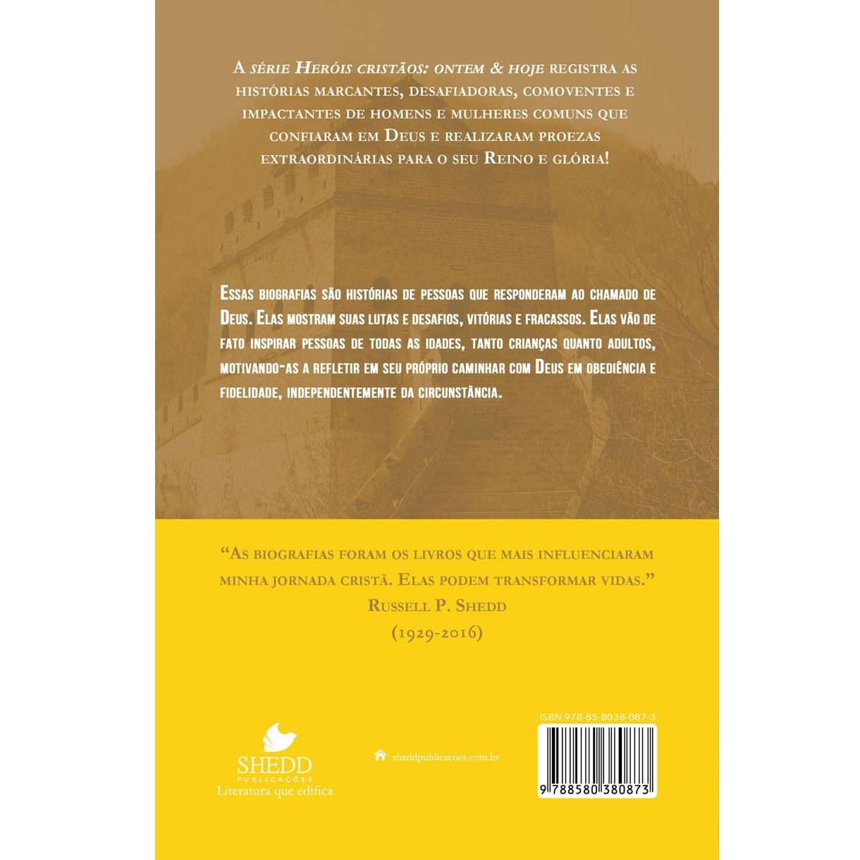 O que temos é uma incrível aventura de fé e determinação. Gladys Aylward, uma empregada doméstica da Inglaterra, ousou confiar em Deus em face de circunstâncias terríveis e aparentemente desesperadoras. Sua vida é uma das verdadeiras grandes histórias missionárias de nossa era.