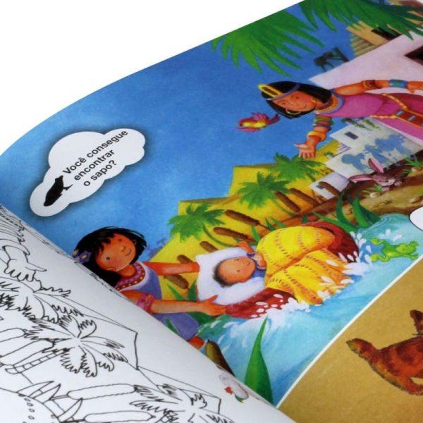 Ilustrações vibrantes conferem vida às narrativas apresentadas. Outro destaque são as atividades, que promovem a interação do pequeno leitor com o texto bíblico.