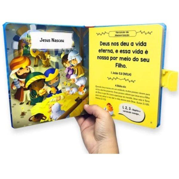 Histórias bíblicas e ilustrações fornecem um exemplo para entender os versículos de forma mais fácil . Esta obra também apresenta para os pequenos algumas das histórias mais conhecidas da Bíblia.