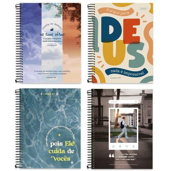 Bolsa portfólio, cartela de adesivos, editorial, divisórias de matérias e miolo com microsserrilhas.