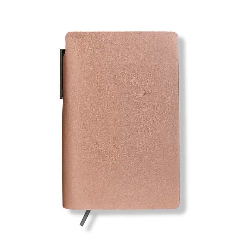Anote com delicadeza e praticidade! A Caderneta A6 Pautada Salmão tem toque macio, visual encantador e vem com caneta para registrar ideias com charme.