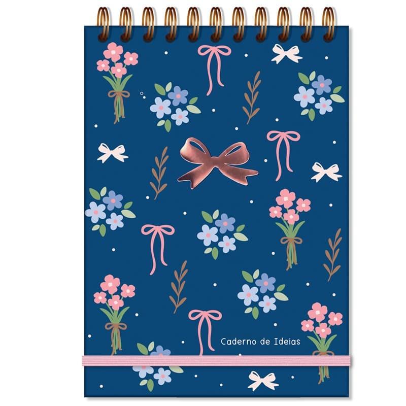 Capa dura, miolo liso, formato 14,5 cm x 20,5 cm, 80 folhas em papel offset 120g/m2 (a caneta não passa para o outro lado), encadernação wire-o e elástico para fechamento.