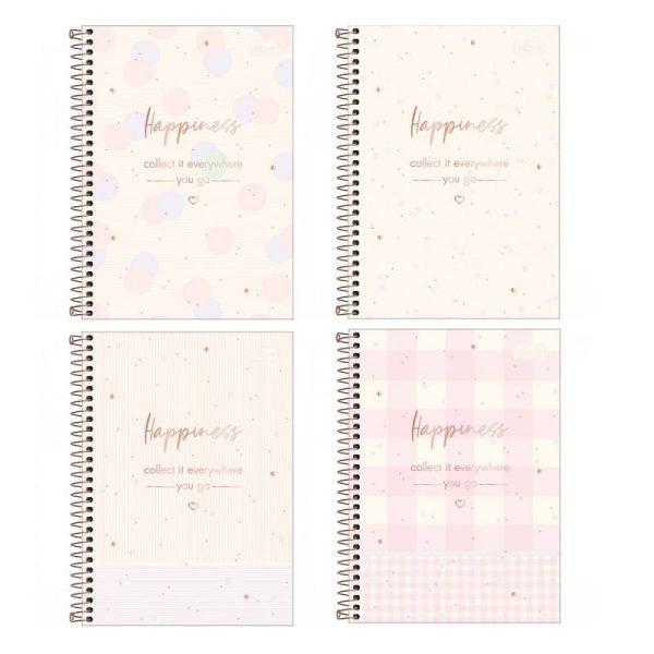 O Caderno Espiral Capa Dura 1/4 Soho 80 Folhas possui capa dura com detalhe metalizado, parte interna decorada, folhas pautadas decoradas e espiral colorido. Ideal para o dia a dia.