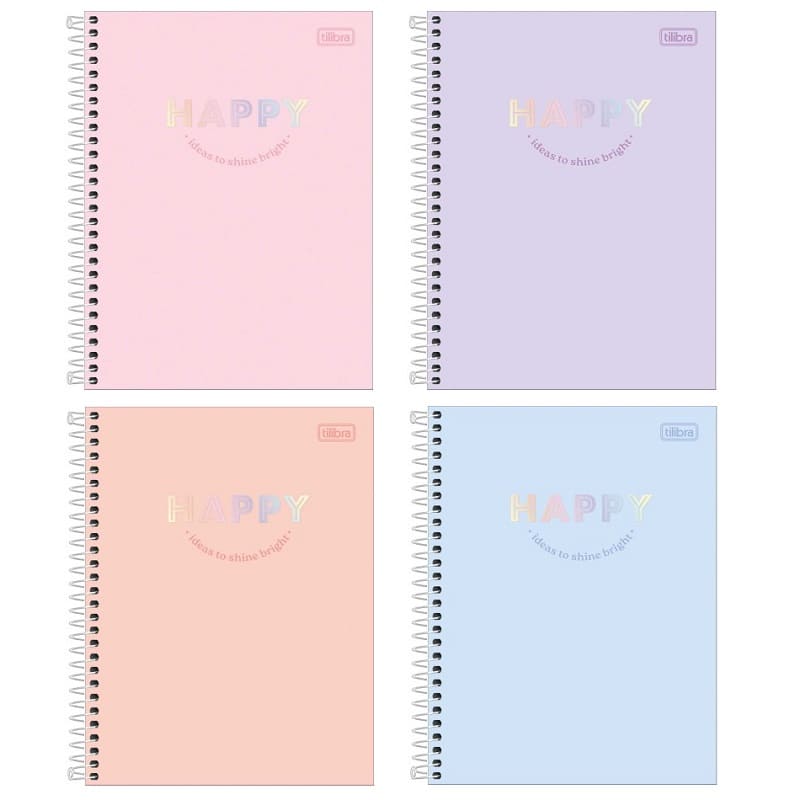 O Caderno Espiral Capa Dura Colegial 10 Matérias Happy 160 Folhas possui formato inovador e compacto, ideal para quem gosta de praticidade. Possui 160 folhas divididas em 10 matérias, capa dura com detalhe metalizado, parte interna decorada, bolsa de papel decorada, folha com adesivos funcionais e folhas pautadas decoradas destacáveis.