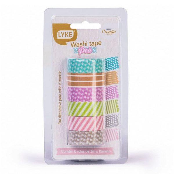 Washi Tape – Lyke – Poá – Com 6 Rolos De 3M X 15Mm