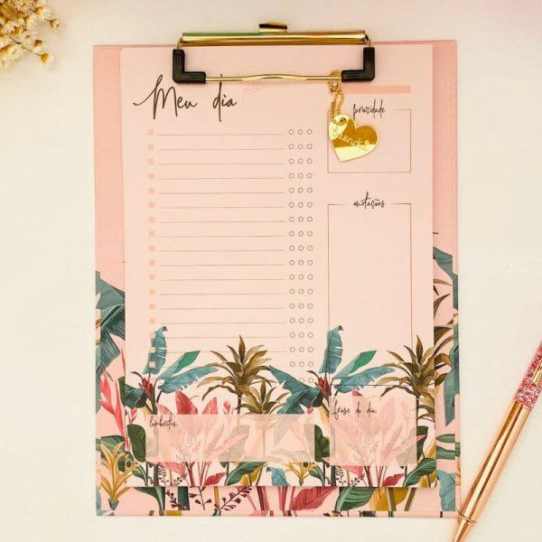 Prancheta A5 Estampada + 30 Folhas Decoradas – Meu Dia Folhagem