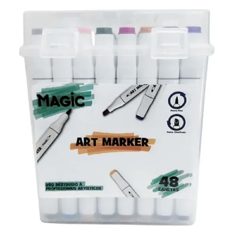 O Kit de Marcadores Artísticos Ponta Dupla 48 Cores MAGIC é ideal para artistas, estudantes e entusiastas da arte que buscam variedade e qualidade em seus materiais. Com 48 cores vibrantes, este conjunto oferece uma ampla gama de tonalidades para dar vida às suas criações.